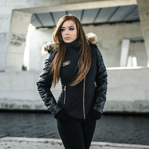 Warme gevoerde jas gemaakt van Polyester en  PU leer.
